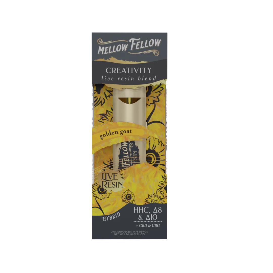 The sweet, fruity, tropical, sativa-dominant Golden Goat is the offspring of Island Sweet Skunk and Hawaiian Romulan. The effects of this strain are: Energy, Euphoria, Relaxation, and Focus. All the Mellow Fellow Master Artist Blends are easy to integrate into daily life, but Van Gogh’s Golden Goat blend was formulated specifically to give you the creative edge.