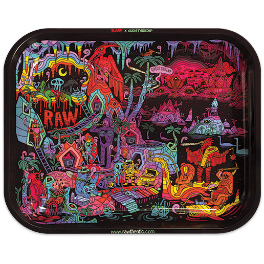 We worked with world famous artists to create the RAW Artist Series, and for this one we teamed up with the one and only Ghostshrimp again to create this RAWkin’ tray! The second rolling tray from this legendary illustrator in the RAW Artist Series features another insane drawing, this time with an out-of-this-world smoke fest going down! Get yours while you can because they are very limited edition and won’t be here for long!